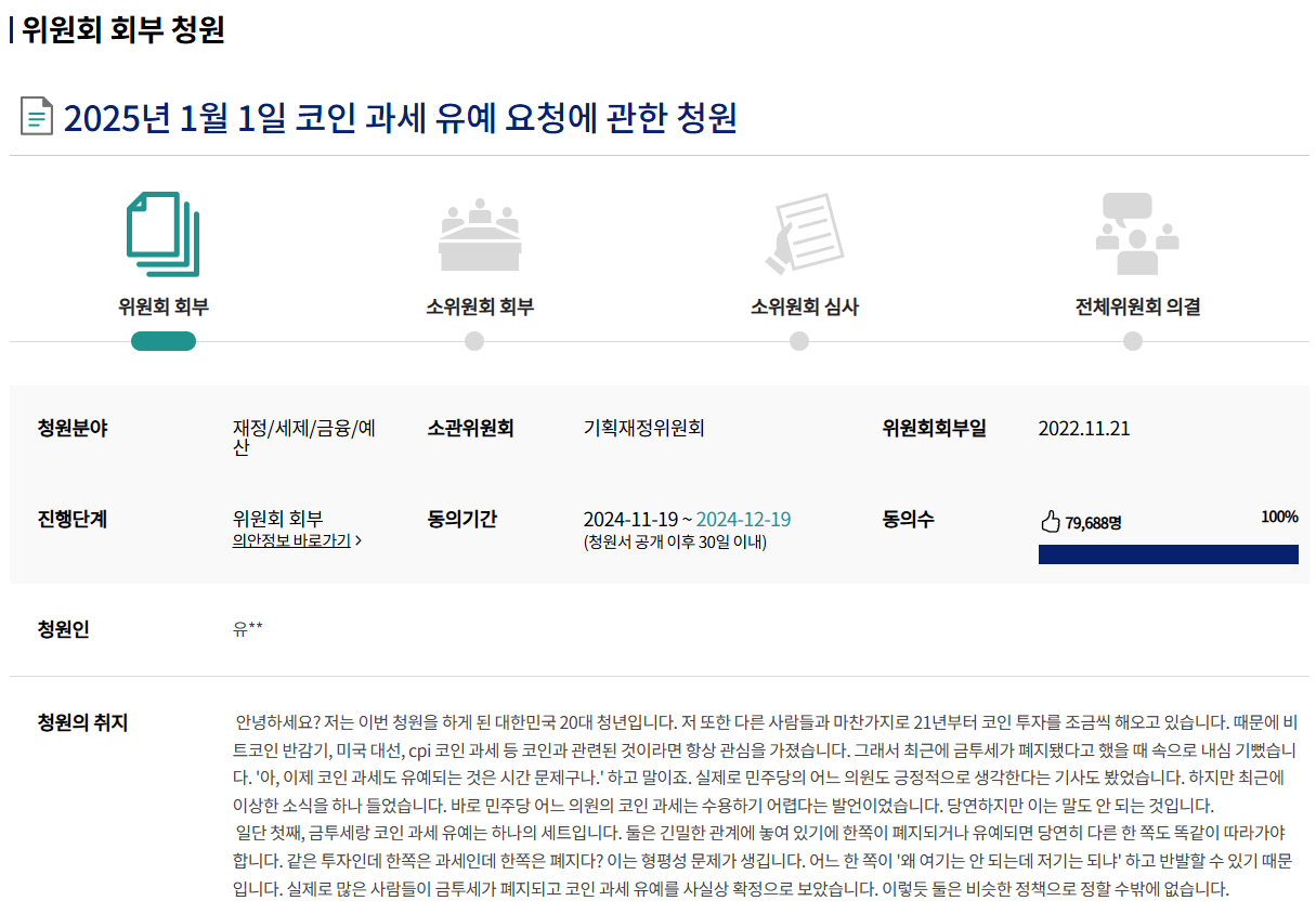 2024년 12월 10일 국회에서는 금융투자소득세 폐지와 가상자산 과세 유예를 담은 소득세법 개정안이 본회의를 통과했습니다. 이에 따라 가상자산 세금은 2025년에서 2027년으로 2년간의 유예가 확정되었습니다. 이 법안의 통과로 인해 가상자산 투자자들은 한숨을 돌리게 되었고, 이는 시장의 안정화에도 긍정적인 영향을 미칠 것으로 보입니다.