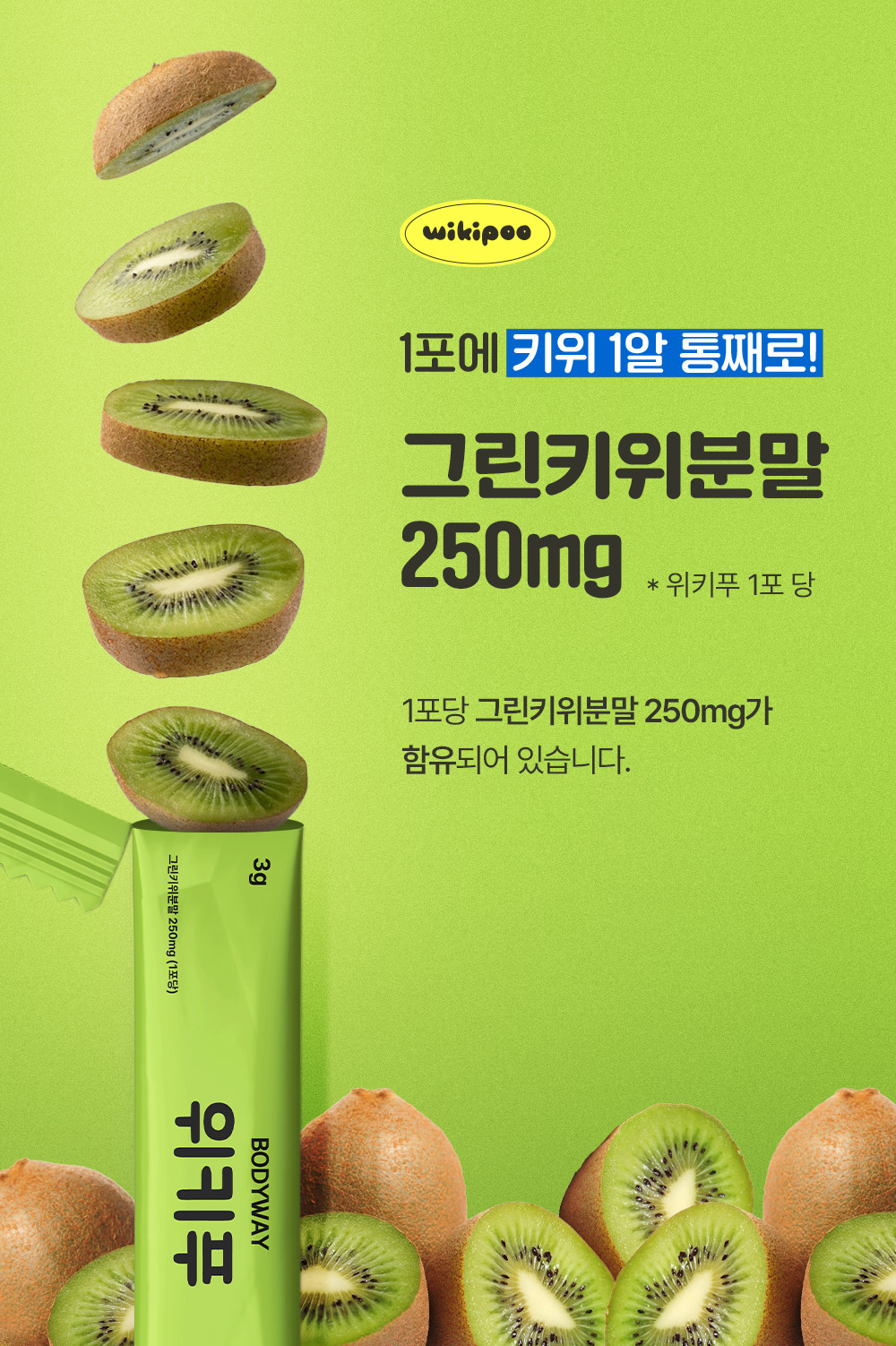 - 한 포당 키위 한 알 분량의 영양소가 포함되어 있습니다.