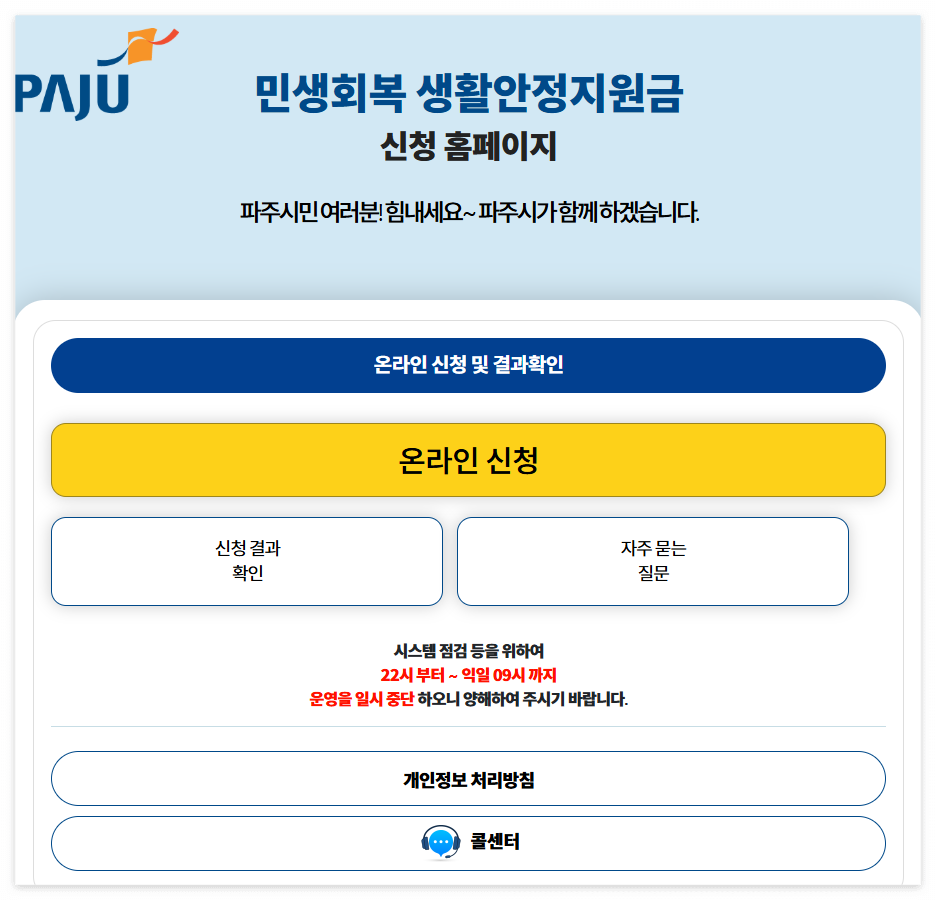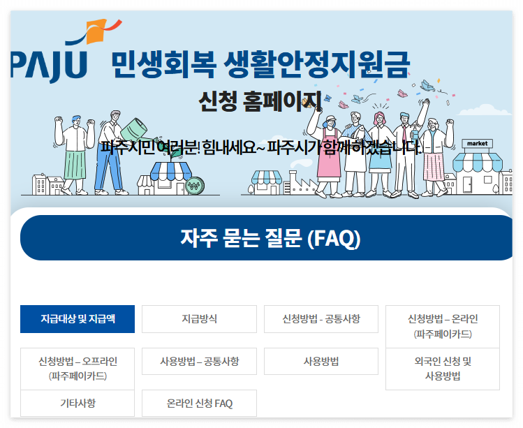 - 파주시 민생회복 생활안정지원금 전용 홈페이지에 접속